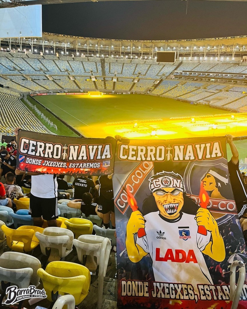Trapos de la barra brava Garra Blanca y hinchada del club de fútbol Colo-Colo de Chile