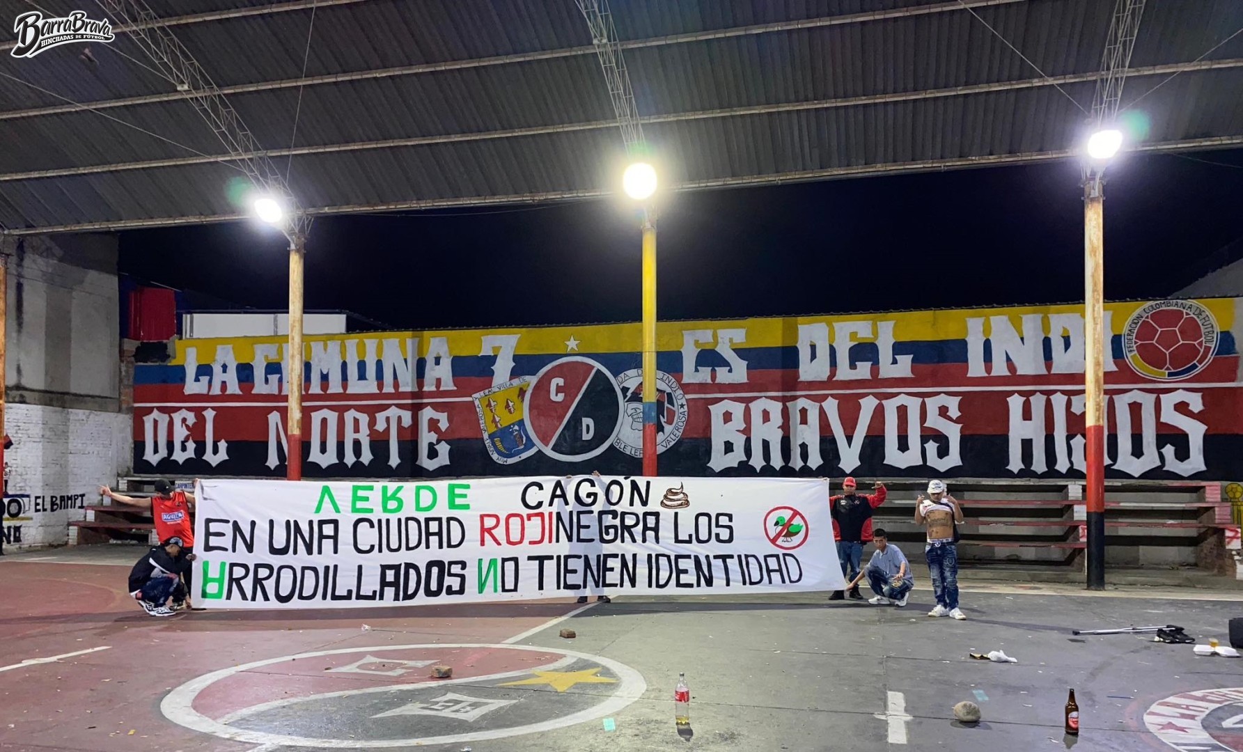 Trapos de la barra brava La Banda del Indio y hinchada del club de fútbol Cúcuta de Colombia