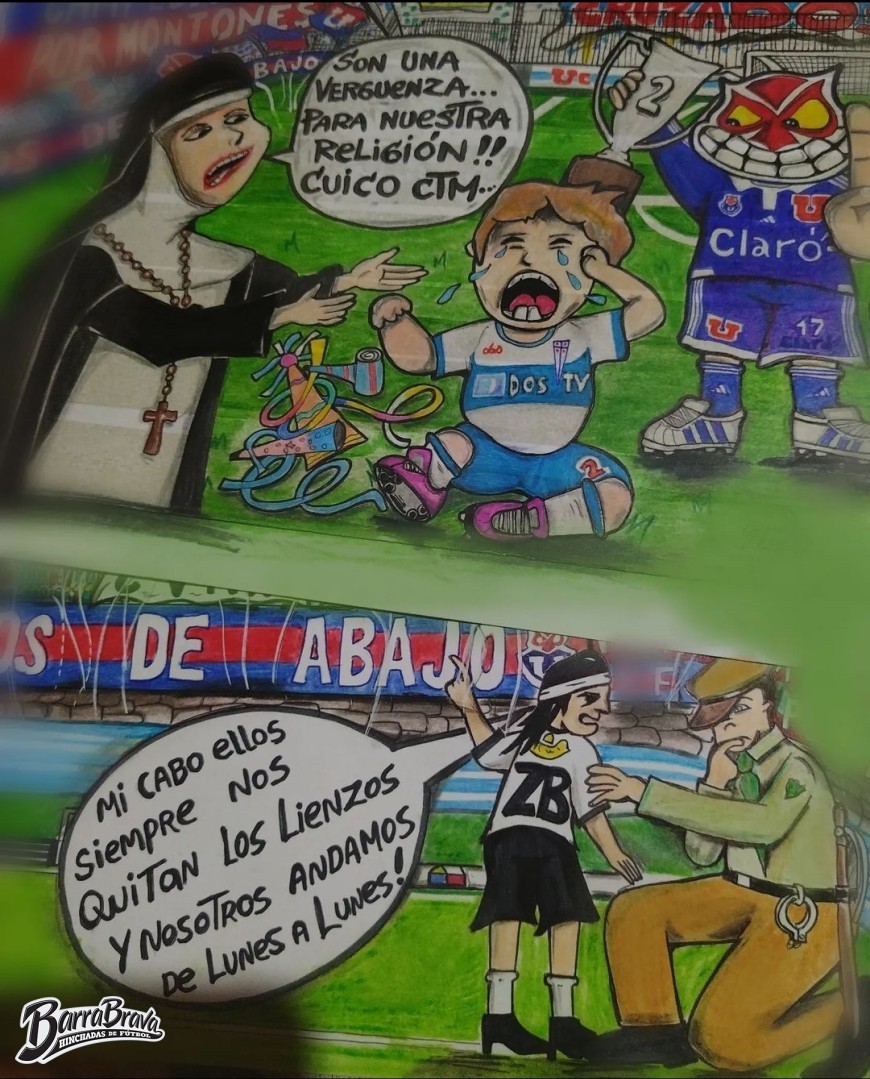 • Desenho - Diseño - Arte - "Anti universidad catolica (anti monjas)" Dibujo de la Barra: Los de Abajo • Club: Universidad de Chile - La U • País: Chile