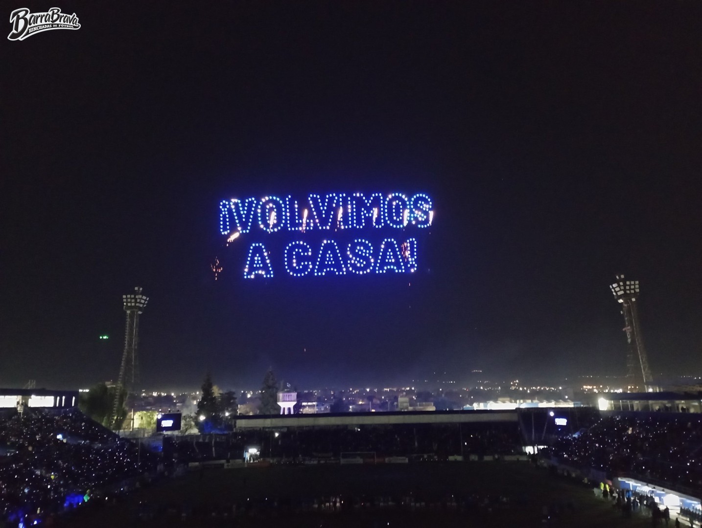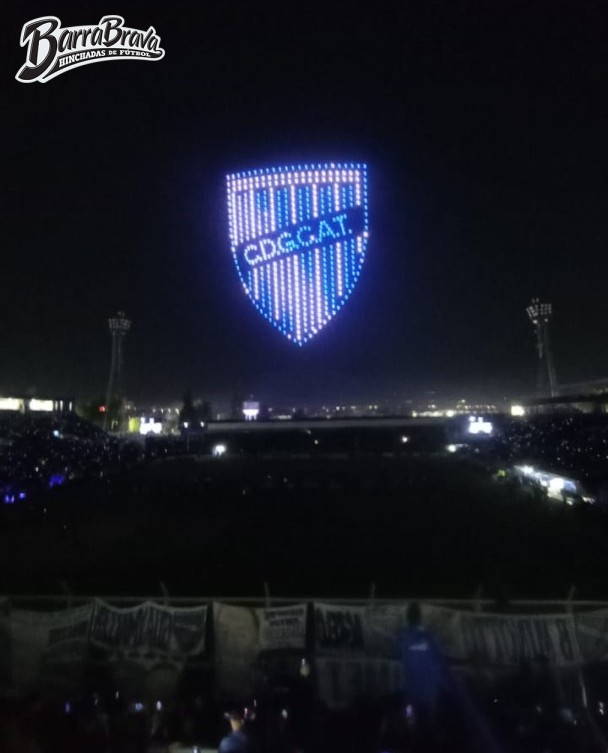 • Foto: "El show de drones de Godoy Cruz en el Feliciano Gambarte." Barra: La Banda del Expreso • Club: Godoy Cruz