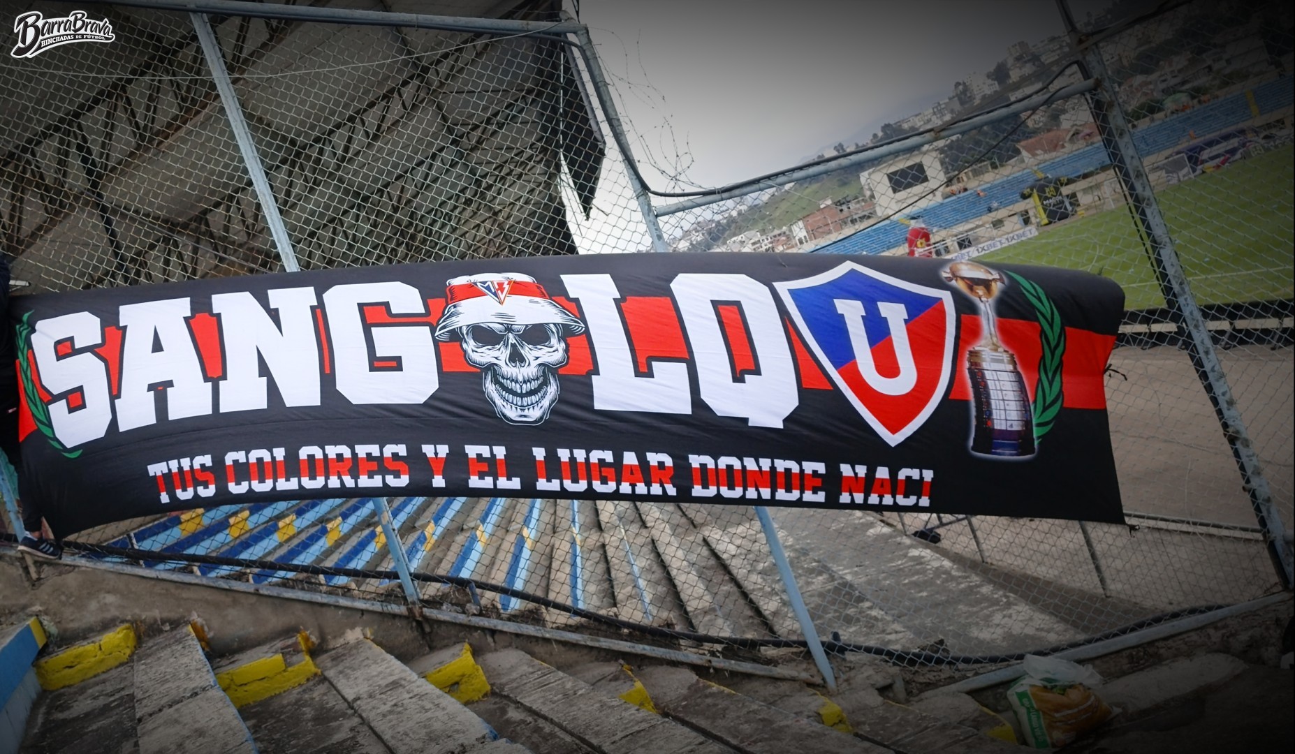 Trapos de la barra brava Muerte Blanca y hinchada del club de fútbol LDU de Ecuador