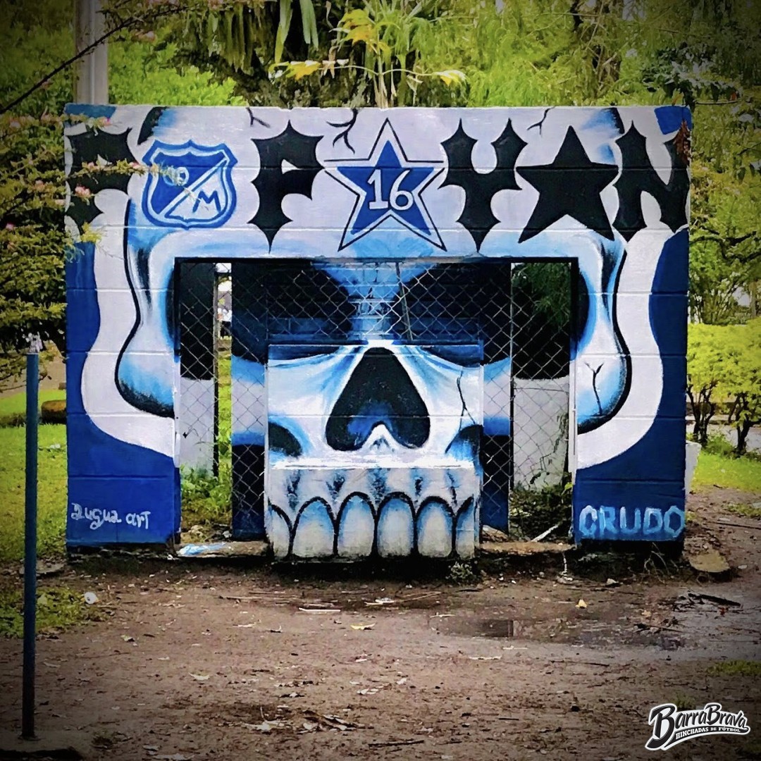 Murales - Graffitis de la barra brava Comandos Azules y hinchada del club de fútbol Millonarios de Colombia