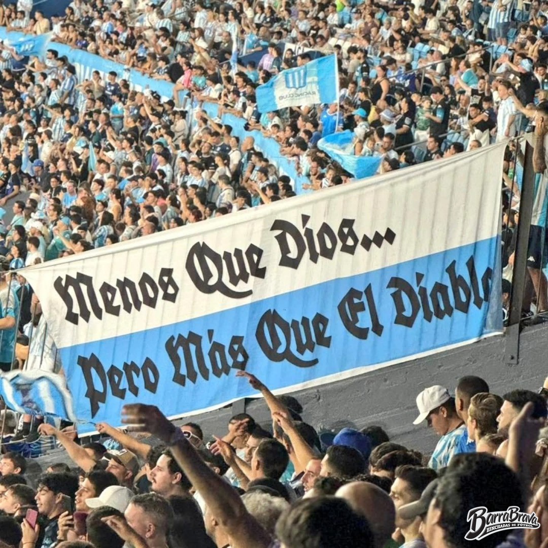 Trapos de la barra brava La Guardia Imperial y hinchada del club de fútbol Racing Club de Argentina